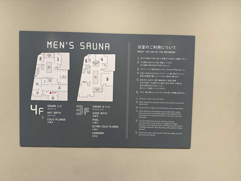 それぞれサウナ室に番号が振られていて4階に1、2番