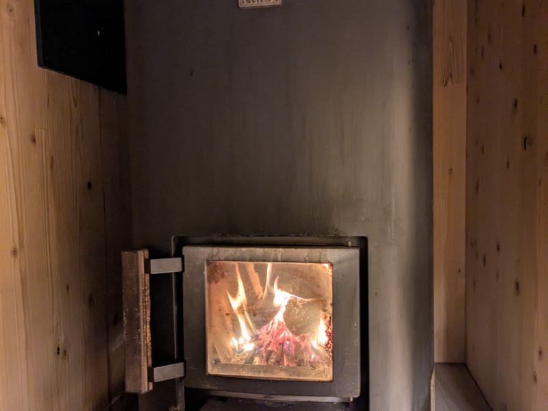 スタッフさんがこまめに薪を投入しに来てくれるから 温度も保たれ 良い感じ🎵