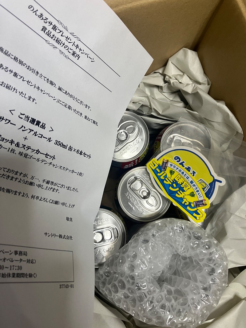 オマケ:サウイキの抽選で「のんあるサ飯プレゼント」に当選。届いたのはジョッキにステッカー、あとノンアルレサワー🍋