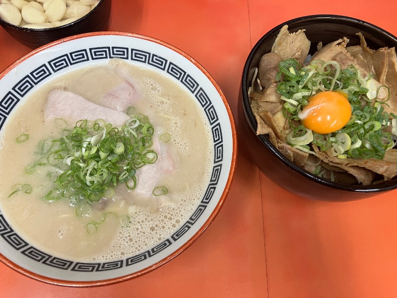 遅めの昼食事前飯に倉敷市中庄のラーメン🍜とんとん。セットにしたらキツくて、替え玉できなかった。