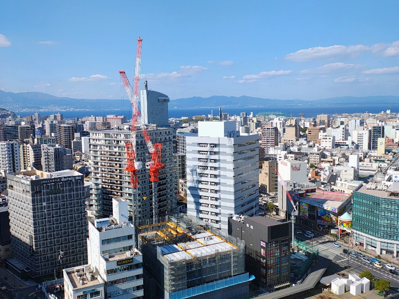 柱、ガラスも無く、水面越しに大分の景色最高👍てんくうサウナ最強かも😊