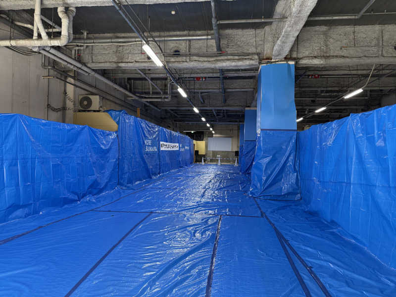 脱衣所、浴室もまずまず混雑。(おそらく)岩盤浴であったであろうスペースが休憩スペースになってた。