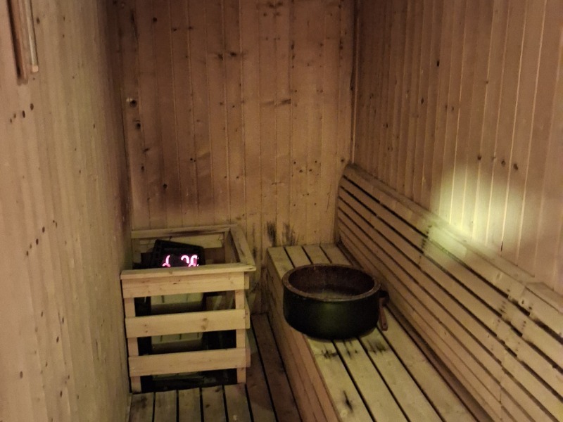 いたるところでアルコール飲み放題なのを楽しみにしていたけど、サウナがあるとは知らなかった。