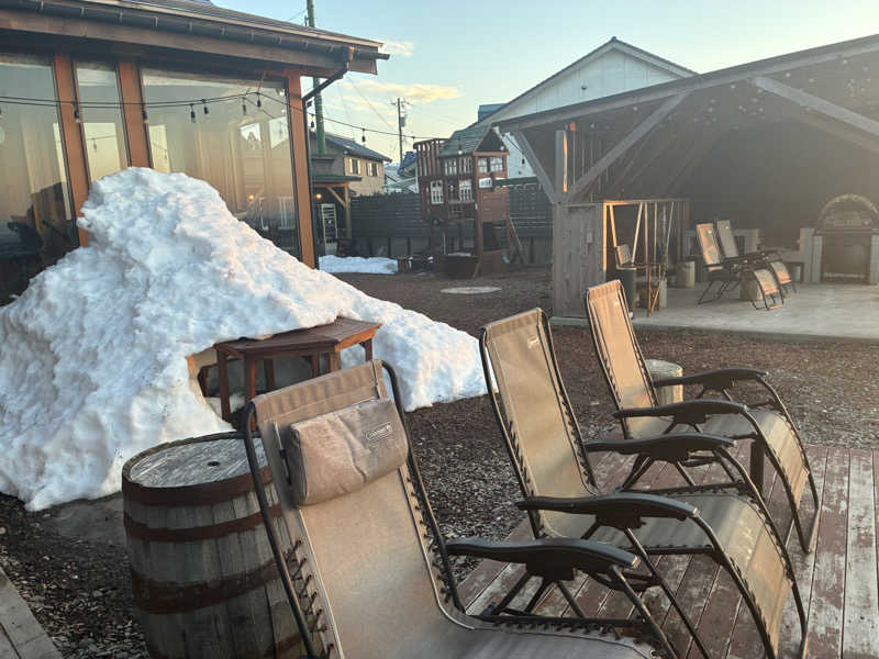 焚き火を囲むように並べられた整い椅子が多く、水風呂も3つあるので、好きなタイミングで整えるのが最高です。夜の焚き火も良さそう。