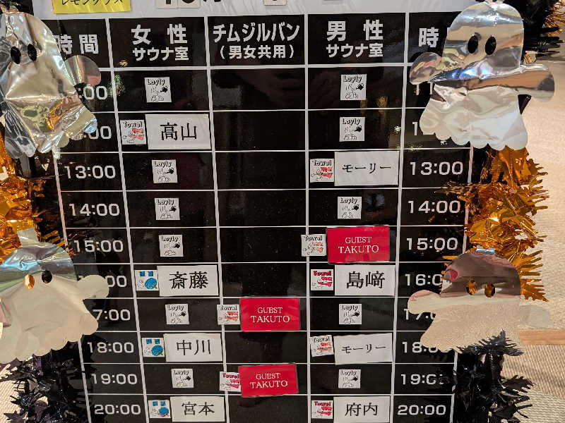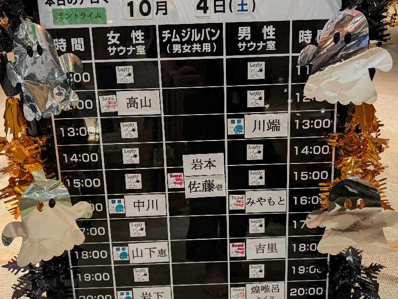 17時のまだやまださんのチムジルバンアウフグースも喋りながらのショータイム。こんな楽しいアウフグース初めて受けた。ってくらい楽しいアウフグースで最高。クールルームで子どもに「芸名なんですか?」て聞かれてて「えー!まだやまだって何回もゆーてたやーん!」って。笑わせてもらったよ。