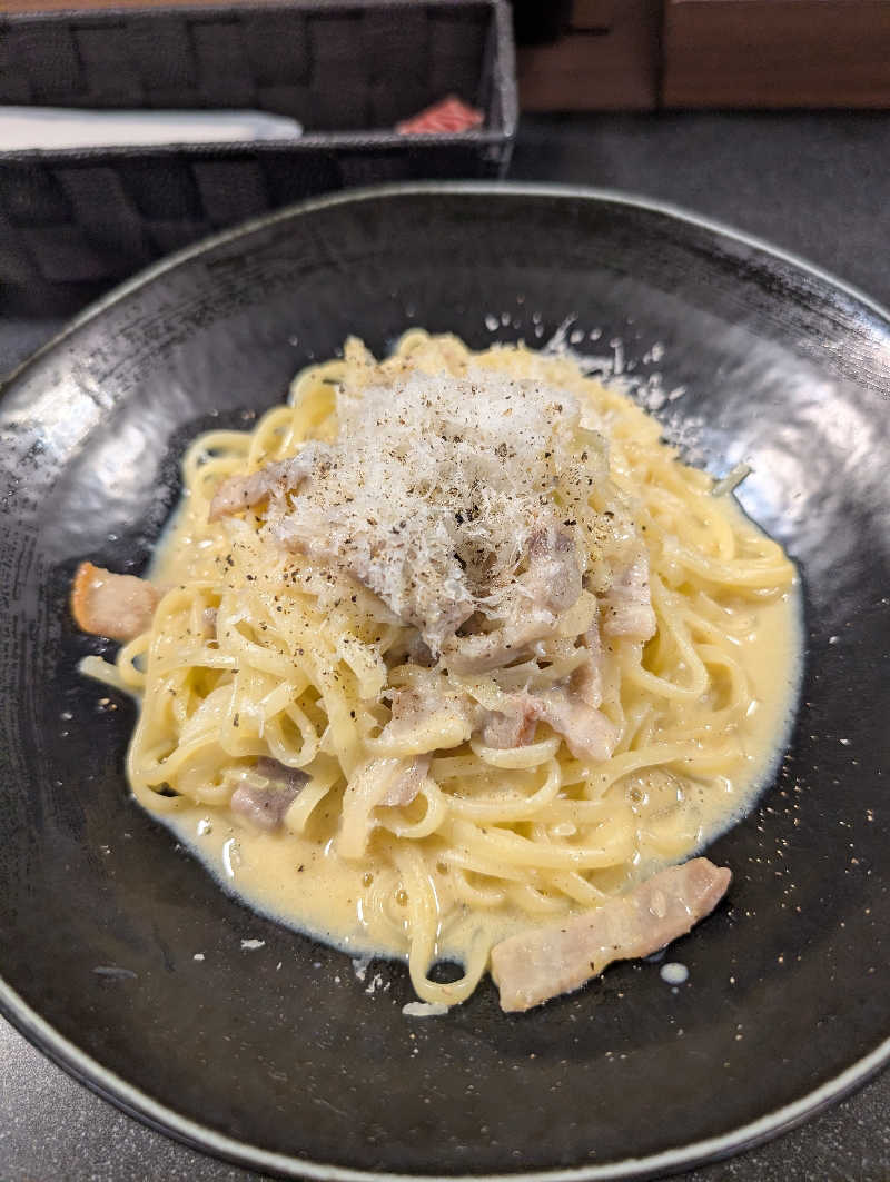訪問前に豚のしっぽでとんかつ食べてきたけど、ここに来たらルナソーレでパスタ食べないという選択肢はないんでカルボナーラをいただいて腹パン。