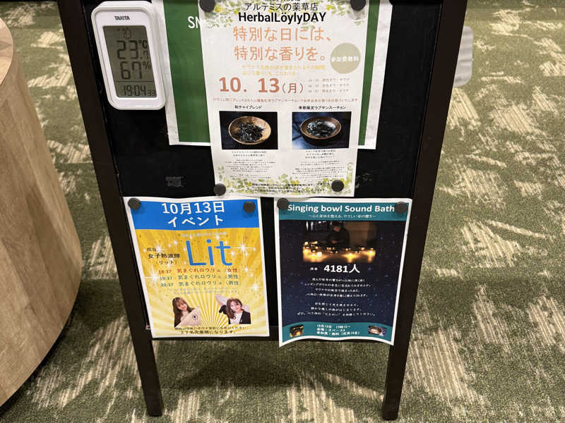 2h、4セット。オートロウリュもアロマロウリュもばっちりタイミング合ったので嬉しい。ブレインスリープ、思っていたよりかなり良かった!外気浴、1セット目は何とか雨の影響無く休めたけど、2セット目〜は、けっこう雨が強くなってきて顔が冷たかった笑