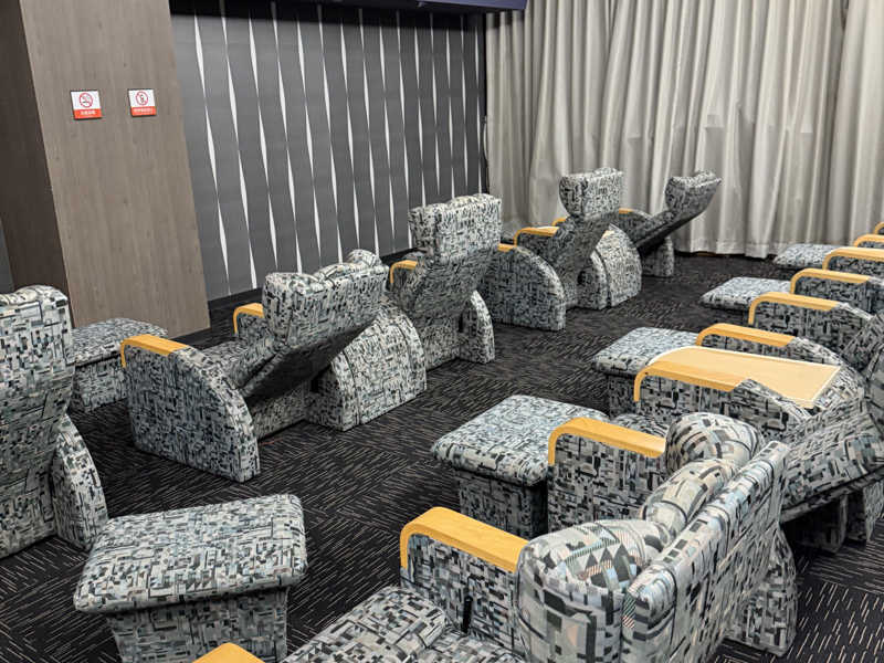 浴場の入り口横にはととのいスペース(4人〜5人)があり、ちょうど外気温と同じくらいの設定でエアコンが効いていて気持ち良きです。