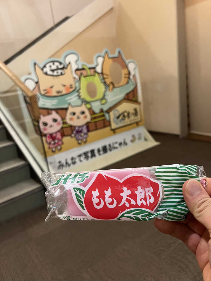 ビールさん😆神戸から来たカンピさんと共に…桃太郎アイスって何なんだろうね❓って買ったのよ✨萬斎も全く知らなくて、桃の味でもするのかと思ったら全くしないね🤣そしてコレが新潟の名物って事をビールさんのコメントで知れて、また一つ有益な知識が増えました😆