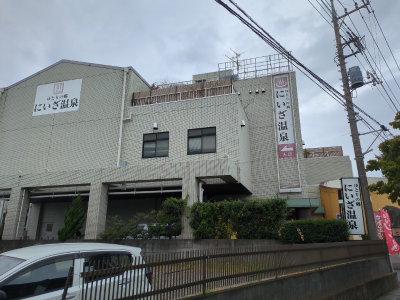 まるで台風が近づくかの様に足早に雲☁️が流れ、生暖かい雨交じりの突風🍃が時より強く吹き抜ける今日、お邪魔したのは新座市のにいざ温泉🎵。バス停を降りてから少しだけ歩きます。