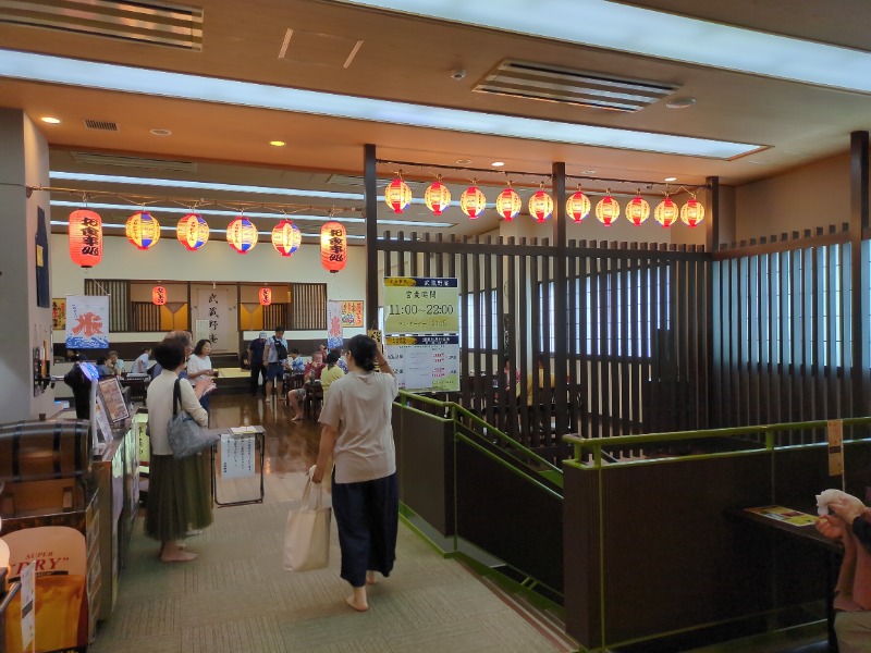 お昼過ぎ、館内のレストラン前には驚くほどの行列ができています。店前のチェッカーで待機登録をすると、何と既に30組以上が並んでいる😱!あまりお店の回転もスムーズではなさそうだし、これでは順番を呼ばれるまで何時間かかるか予想がつきません。サウナは空いていたのに館内の混雑は半端ない。お盆休みだからしょうがないですね😭😭😭。残念ですが館内でのサ飯はあきらめて、駅の近くで食事することにします。