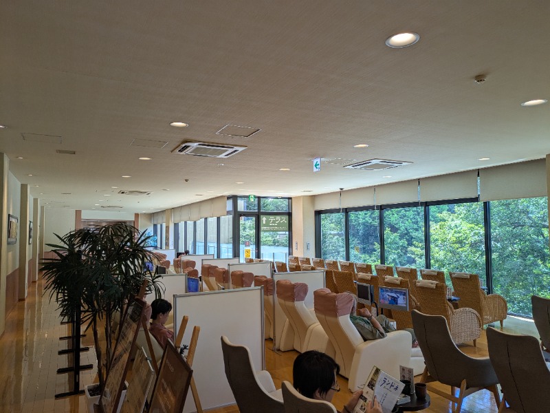 お客さんは年配者と家族連れが多い。今日は雨模様🌧️だし、遠くへ行っても渋滞や混雑に巻き込まれるくらいなら近場の温浴施設でってことでしょうね。サ室内では地元っぽいオジサンたちがずっと近くの飲み屋の話していたし、レストランでは子供達が楽しそうに走り回っています😅。しかしここのレストラン、ちょっとしたライブ🎤やリサイタル🎉ができそうなくらいに広いし、やけに天井が高い。冬の暖房効率が悪そうだなぁ、なんて考えるのは私だけでしょうか😅?