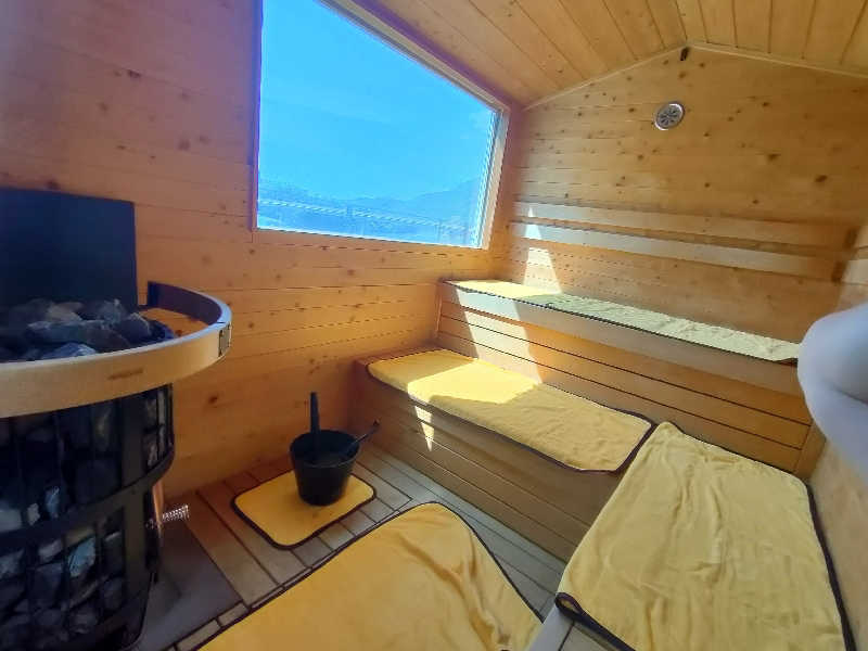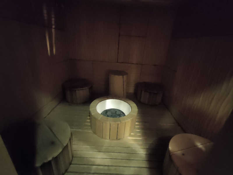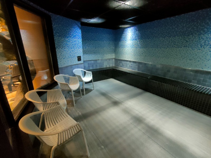 室内広々のためか、湿度は低めでじっくり入ると芯からジワジワ熱くなるタイプ。