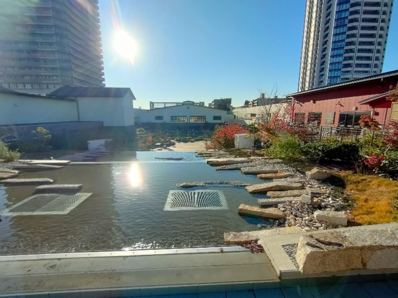 露天風呂は段差と石造りで開放感がしっかりあって、夜は照明の反射が気持ちよくて“旅先温泉”感が強い。温泉の香りがほんのり立ち上がって、サウナ前の体ほぐしにちょうど良い。