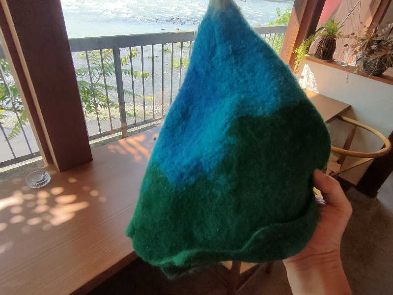 一見、ただの素敵カフェだが、何やら手作りサウナハットがいくつも飾ってあるぞ🧐