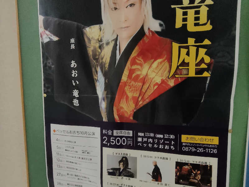 壁のポスターには銭湯の紹介と佐藤琢磨の紹介文