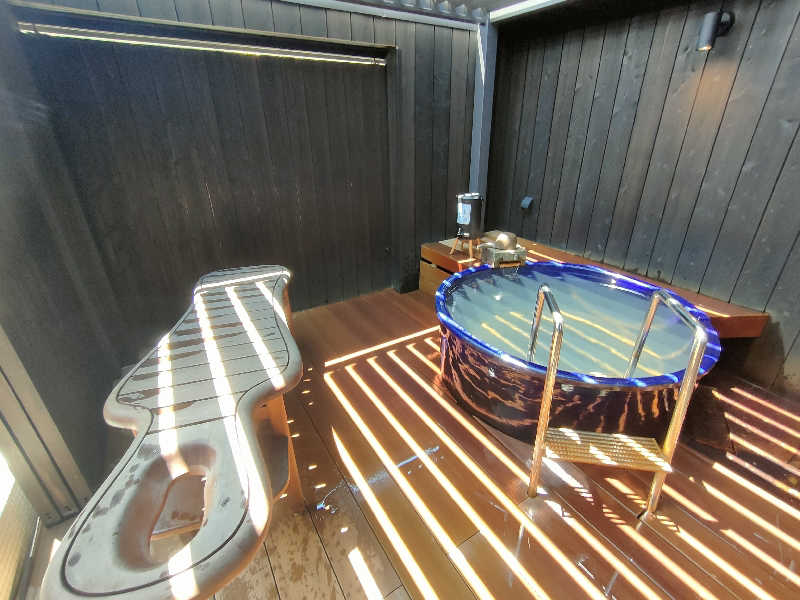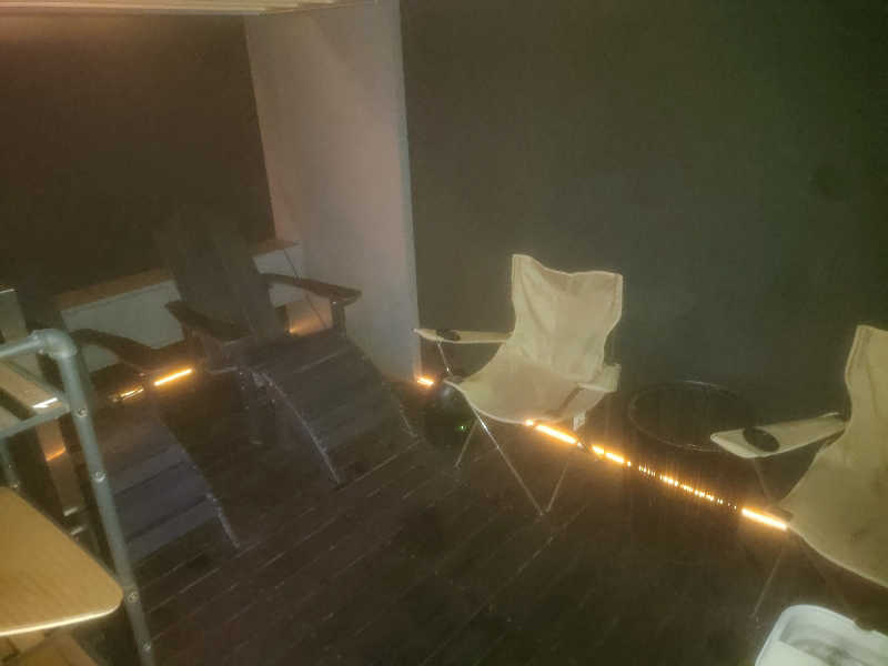 露天スペースに「ととのいイス」3脚+長〜いベンチあり。