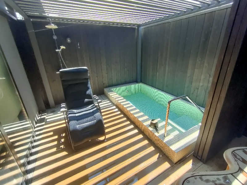 体感温度17℃としっかりキンッと冷たい設定で、深さもあって肩まで気持ちよく浸かれる。