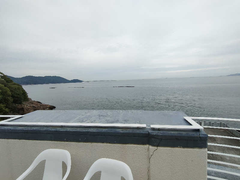 露天にイスが2脚とベンチ1台点在していて、風通りがとても良い。