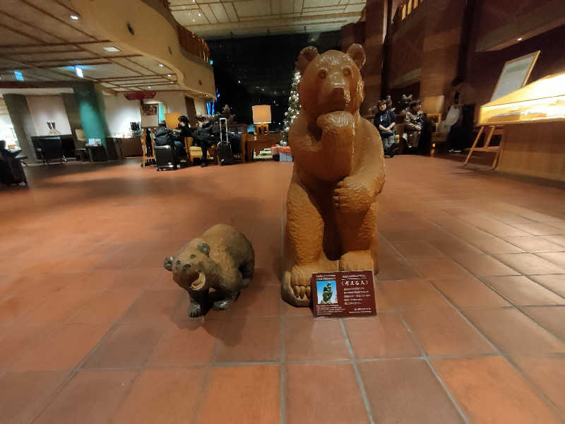 輪切り切株の他にも、木彫りの熊彫刻🐻コレにもかけちゃお、バシャ🌊「ガオーリュ」