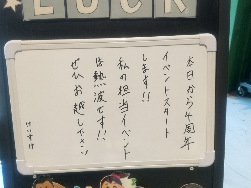 4周年記念で熱波イベントやるみたいですね。ブロワー熱波だとか。毎時00分の自動ロウリュの水量も増えるみたいです🔥
