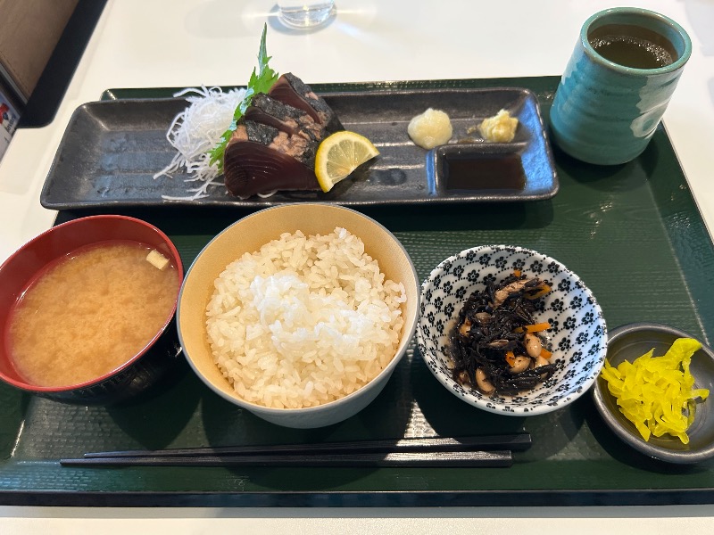 お昼前にルオントにてご飯セット+鰹のタタキ(三切れ)+だし巻き卵で定食完成👍