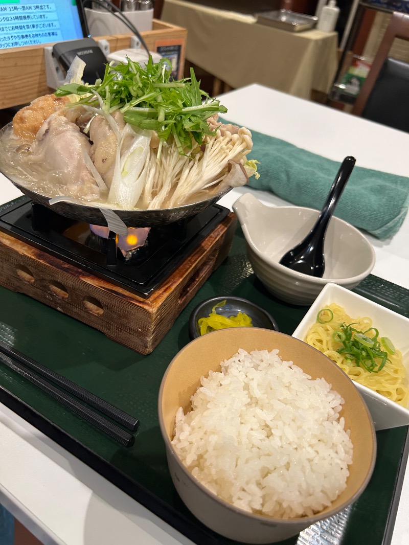 お腹も空いてきて、今日はお鍋フェアをチョイスし、その中から鶏鍋+半中華麺を注文👍