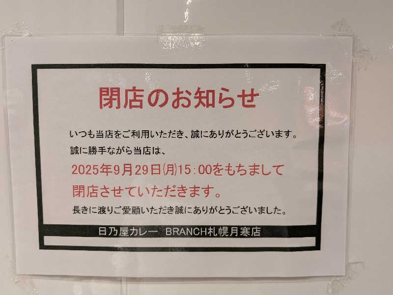 さっきまでにぼちゅうのお口になっていたのに一瞬でカレーモードに切り替わった。よーし、今日はカレー食うぞ〜とブランチ月寒の奥の方へ歩みを進めたら衝撃の張り紙が。