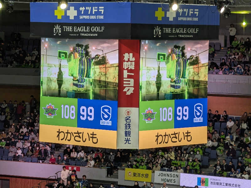 Bリーグレバンガ北海道の開幕試合をDAZNで見ながらとん平焼き、だし巻き卵、メガハイボールを頼み呑み始める。