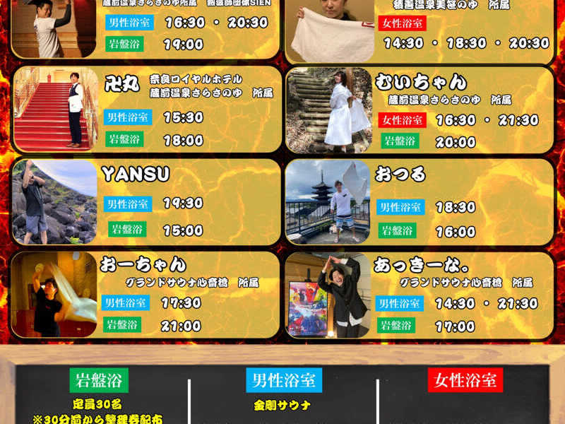 岩盤浴アウフの整理券配布時間と浴室内アウフの開始時間が被っており立ち回りに苦戦したけれど何とか今日出演する全てのギーサーさんの