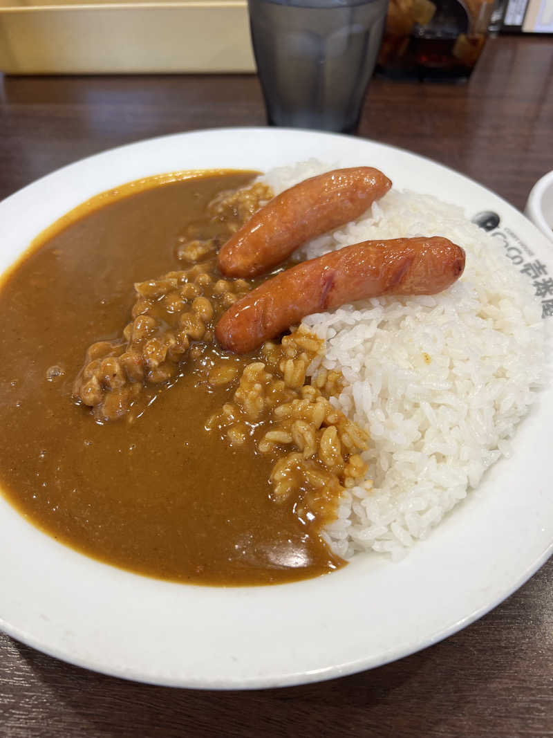 ソーセージと納豆。そして4辛。食ってみな。飛ぶぞ。