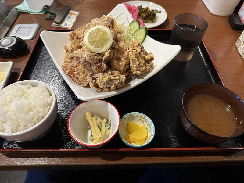 今日は俺の唐揚げ定食(中)のコメ🍚🍚🍚🍚🍚🍚🍚🍚🍚🍚はちび盛り。あ😅頼んでからおもったけど、この前食い切れるギリギリだったような…