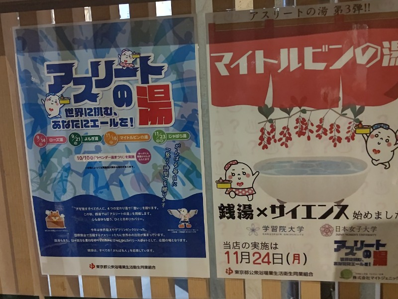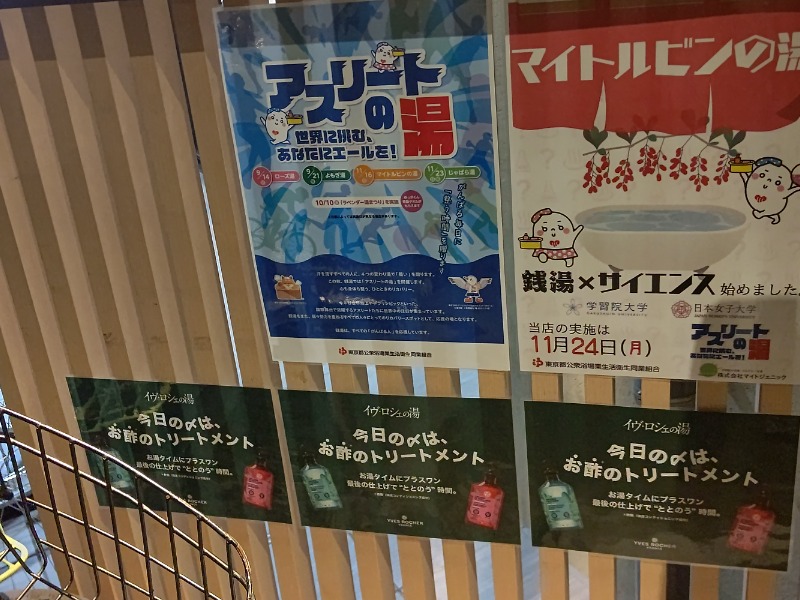 バス🚌は横浜山手⛪️🌹に中華街🇨🇳で重慶飯店🔥🇨🇳で昼飯☀️🍴は四川料理🔥🇨🇳と中華街🇨🇳で買い物、マリンタワー🗼、山下公園⚓️からシーバス🛥️で赤レンガを巡り大満喫して東京駅から電車で巣鴨🦆に今日のサ活🧖♂️は月曜日恒例の巣鴨湯🦆に今日はイベント湯♨️はデフリンピック👂️🧏♀️開催記念のサイエンスなマイトルビンの湯🟩🧪♨️と新しいヘアケバスケアコスメ🧴のイベント「イブ・ロシェの湯🟩🧴」でヘアケアバスコスメ🧴に巣鴨湯🦆に到着したのは18時28分頃の男性サウナ🧖♂️は9人待ちに22分後に呼ばれて、フロント(番台)🛎️でサウナ待ち番号札、下駄箱札、自前の巣鴨湯🦆のサウナ回数券🧖♂️🎫と入浴料金の券を提示してサウナバンド🧖♂️🏷️を付けてプラス100円でタオルセットを貰い、脱衣場で準備を行ってから浴室へまずはいつものサウナ🧖♂️前のルーティンはイブ・ロシェのヘアケアバスコスメ🧴を使いました❗️とても良かったです❗️
