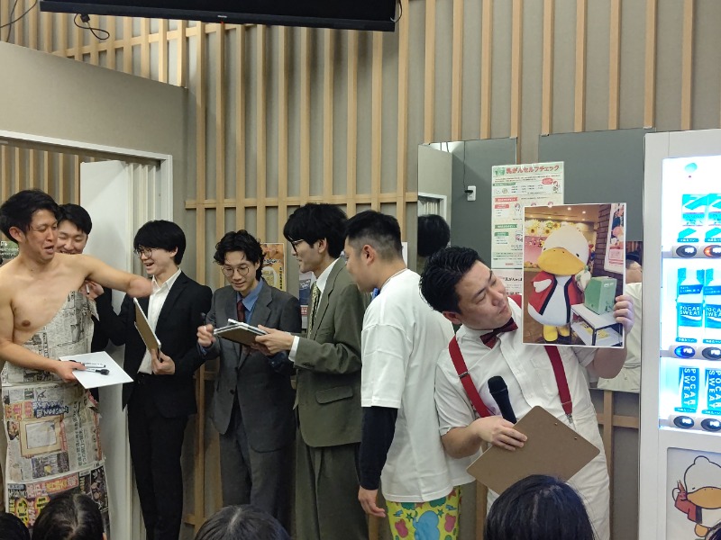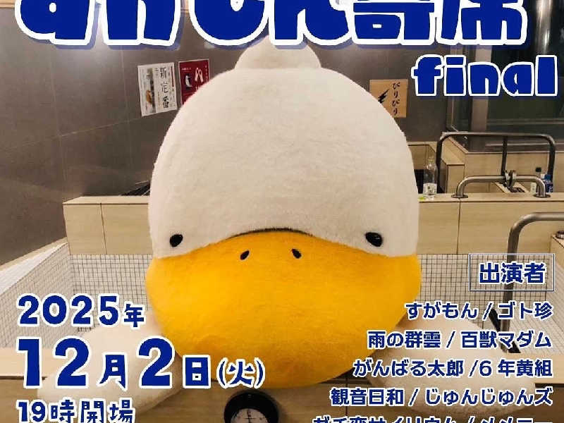 仕事は移動を行いながら終えて着替えをして今日は定休日の巣鴨湯🦆は最後のすがもん寄席🦆🤣を開催❗️やはり今回も満員御礼ですがもん🦆と11組のお笑い芸人さん達が登場❗前半はオープニングをメメニーが続いてガチ恋サイリユム、タチェット、すがもん🦆のお供役のゴト珍(後藤珍道中)さん、渋谷の銭湯サウナ改良湯🐋の熱波師をやってるピン芸人がんばる太郎さん、らんちゅう、じゅんじゅんズの爆笑ノンストップ7️⃣連発🤣から休憩を挟み後半はM-1準々決勝進出の大正大学卒のお坊さんコンビ観音日和から6年黄組、百獣マダム、そしてすがもん寄席🦆大トリは第1️⃣回すがもん寄席🦆🤣で新聞紙を巻いて雨神様が大爆笑🤣となった雨の郡雲が再び雨神様が降臨❗️そして出演した芸人さんのすがもん大喜利🦆🤣やすがもん🦆と即興ネタなどを楽しみ、巣鴨湯🦆を後にしてさくらトラム🌸🚊と京浜東北線🟦🚃で上野に宿泊を予約していた北欧🍛🧖♂️にお泊まりに❗️