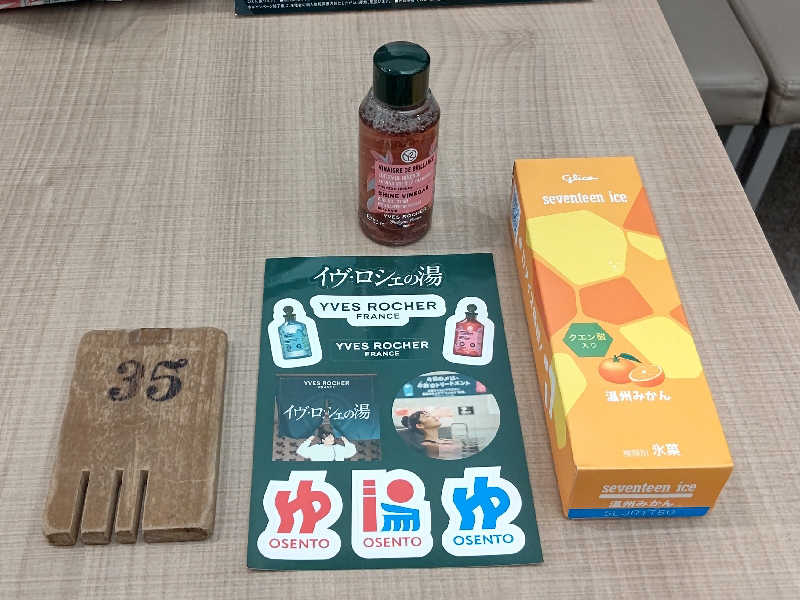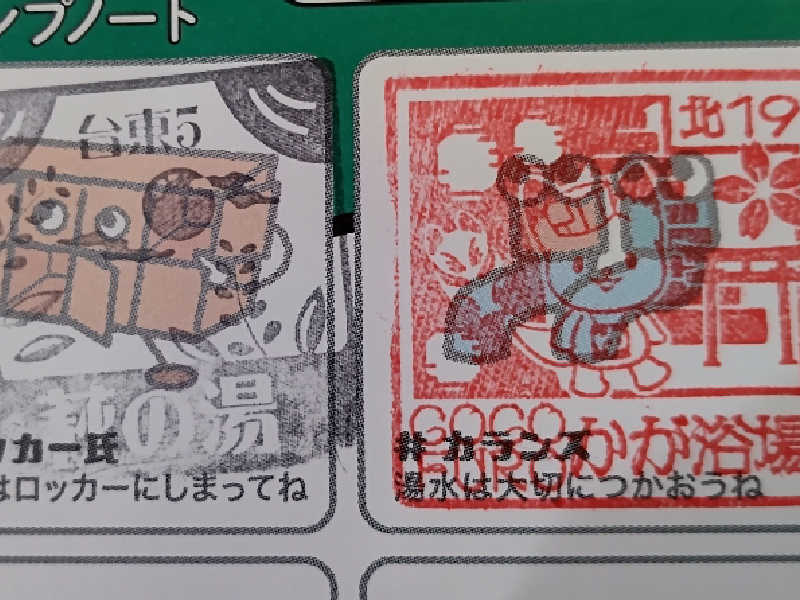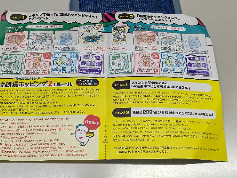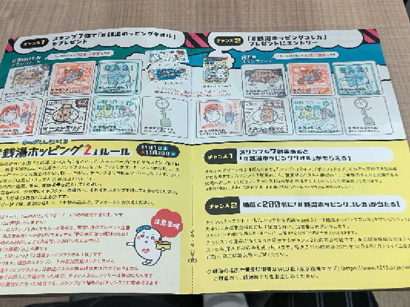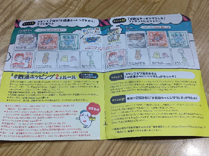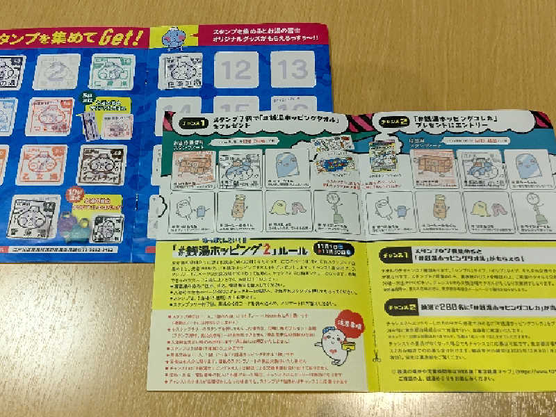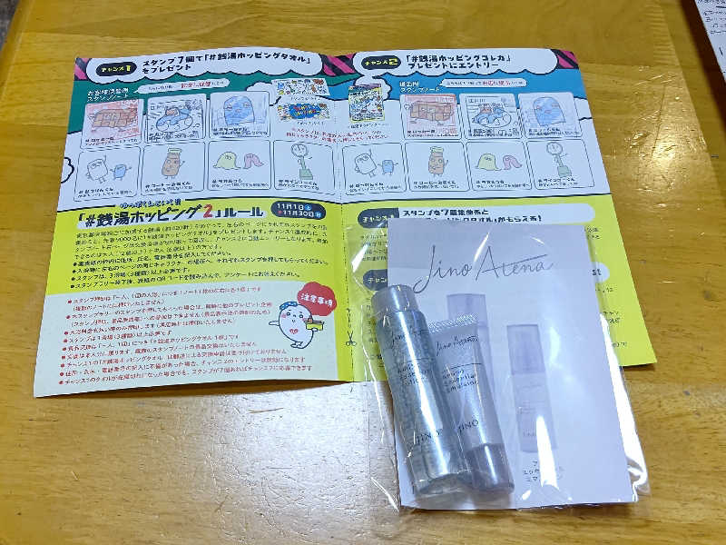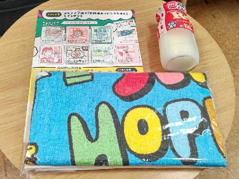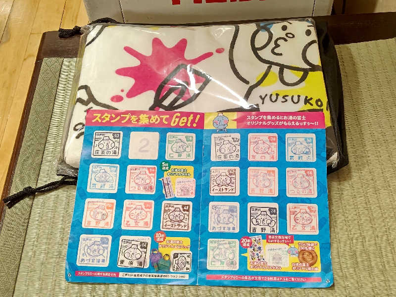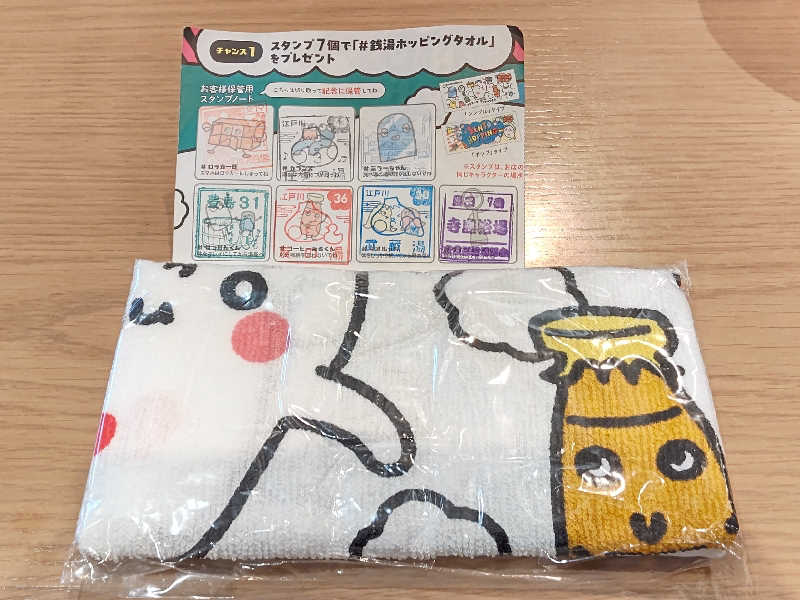 到着して、フロント(番台)🛎️で会計を行い、それと同時にスタンプラリーの最後の7️⃣個目(ダイジューくん)の欄にスタンプの押印を貰い2️⃣枚目のゆっぽくんタオルのポップタイプをGETしました😃✌️❗️