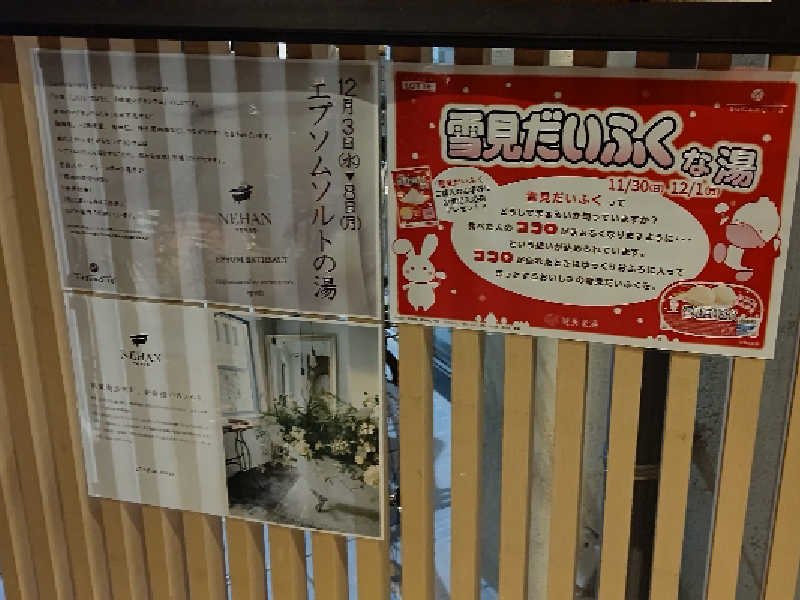 フロント(番台)🛎️で下駄箱札と自前の巣鴨湯のサウナ回数券(タオルなし)🧖♂️🎫を提示してプラス100円でタオルセットにして入浴料金と一緒にキャッシュレス決済で支払い、サウナバンド🧖♂️🏷️を付けてタオルセットを貰い、脱衣場で準備を行ってから浴室へまずはいつものサウナ🧖♂️前のルーティンを行ってから巣鴨湯🦆名物の和風バレルサウナ(桶型サウナ)🧖♂️に室内の温度は100℃のアツアツ🥵で今日は病み上がりなので無理をせずに慣らしの1回目は5分、2回目は6分、ラスト3回目は5分の今日は3回行いおけしゃんろうりゅ(オートロウリュ)🔥は今回は体調を考えパスに汗を出し蒸されたら掛け湯で汗を流してから14℃の水風呂は30秒3回、31℃の美泡水風呂で1分3回浸かってから体を脱衣場内のぼでぃどらいやー(乾燥室)で体を拭いて乾かしてから直ぐ近くのととのいチェア🪑で5分3回の内気浴を行ってから最後はお目当ての雪見だいふくの湯🟥⛄️♨️にしっかり温まって整いました❗️サウナ上がり🧖♂️はもちろん雪見だいふく🟥⛄️をいただいて自宅でサ飯(夕飯)をいただきます❗️明日は定休日の巣鴨湯🦆で最後のすがもん寄席🦆🤣を開催、俺も観に行きますだがも❗️そして巣鴨湯🦆の冬至のゆず湯🍊♨️は12月22日の月曜日に開催します❗️