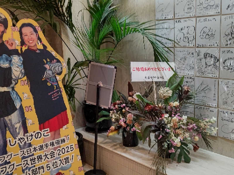 巣鴨湯に到着した時は待ちも無く直ぐに入れました❗️フロント(番台)🛎️で自前の巣鴨湯🦆のサウナ回数券🧖♂️🎫 を提示すれば通常2500円が500円割引🈹に2000円なり支払いはキャッシュレス決済で済ませ、そして東京銭湯スタンプラリー2025 ゆっぽくんと行く #銭湯ホッピング2️⃣ ポカポカオールスターズ編の1️⃣冊目の3️⃣個目(ミラーちゃん🪞)のスタンプの押印を貰い、タオルセットとSTONsのブレスパイプとタオルセットを貰い脱衣場で今日は女湯側のロッカー🛅を使用して準備を行ってから女湯側の浴室へまずはいつものサウナ🧖♂️前のルーティンのお清めはMARO17シリーズのスカルプシャンプー🧴コンディショナー🧴とボディソープ🧼を使って気持ち良くルーティンを終えてからまずは女湯側の和風バレルサウナ(桶型サウナ)🧖♀️に室内の温度は83℃のマイルドな温かさに入りやすく1回目はおけしゃんろうりゅ(オートロウリュ)🔥からスタッフロウリュはレモングラス🍋🌿のロウリュに癒され17分、2回目はノーロウリュで10分、3回目は男湯側のサウナ🧖♂️に室内の温度は100℃のアツアツ🥵で6分、4回目は再び女湯側に入り2回目のスタッフロウリュはカモミール🌼🌿のロウリュにまた癒され11分、ラスト5回目は女湯側に6分のサウナ🧖♂️は女湯側4回、男湯側1回の5回行い汗を出し蒸されたら掛け湯で汗を流してから女湯側は15℃男湯側は14℃の水風呂に1分5回から女湯側も男湯側も同じ30℃の美泡水風呂に2分5回浸かってから女湯側のボディどらいやー(乾燥室)で体を乾かしてから1・2・4回目は脱衣場内の今日だけのととのいベットで3・5回目は内気浴スペースととのいチェア🪑で5分5回の内気浴を行って最後はエプソムソルト湯~檜の香り~等の湯船に温まって整いました❗️そしてサウナ上がり🧖♂️はジュースを貰い、千本くじをして大満足でした❗️