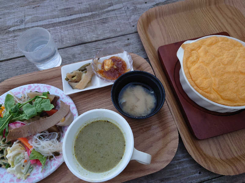 ふわふわの卵の下にゴロゴロお野菜が入ったライス美味しかった。そしてサラダバー60分食べ放題。最高!