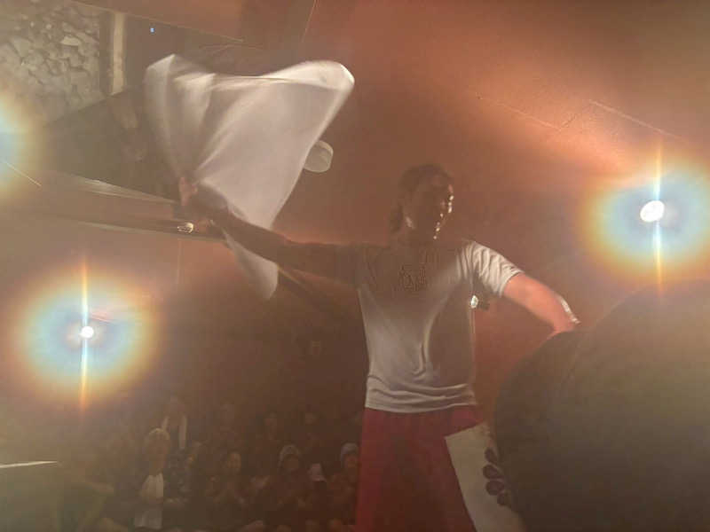 シアターでオカミン🙌 ただの上手なタオルテクニックではなく風に人が乗りますね スカイスパに来て受けて良かったそれだけです😌
