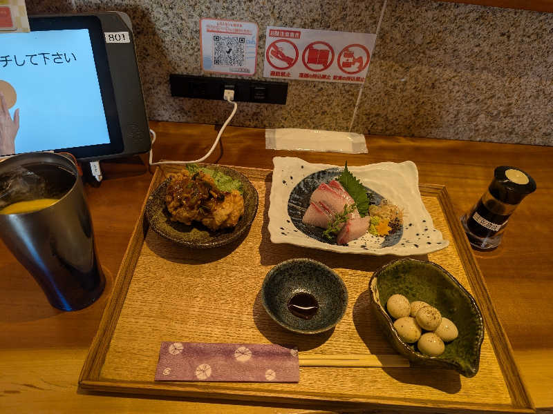 今日は仕事終わりにこちらへ。せっかく近くにスーパー銭湯みたいなのあるしちょっと寄ってから飲みに行くかなあくらいの軽い気持ちでイン。タオル込みでも1000円切る。ありがたい安さ。