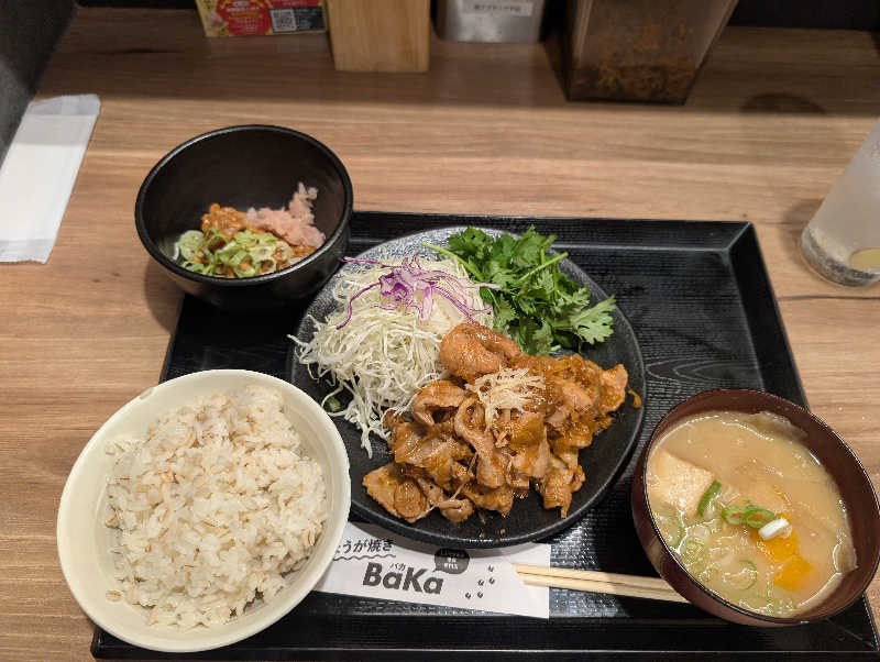 12時頃はけっこう混んでいた。ちょうど一セット目入ってすぐ焼き生姜ロウリュ。最上段で温度も表示100度でこのロウリュはガッツリ効く。