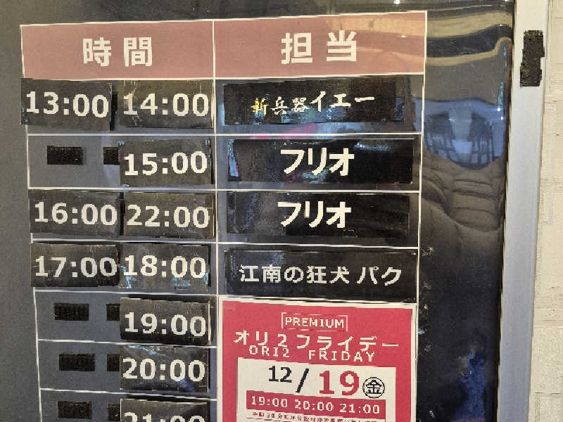 ヘヴンきってのロングロウリユの名手。段階を経て激アツにしていくのでポロポロと離席していく方多数。ラストの個別熱波(5回)で、熱波の強弱具合が“飴と鞭”でたまらんです