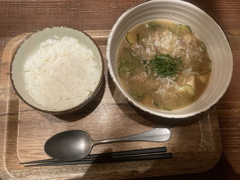 サ飯は2Fレストランで宮崎の郷土料理冷や汁を頂く。これは楽しいサウナが川崎にできたもんだ。