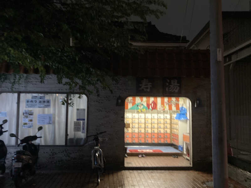 サ室の横に露天風呂の入口がある。はて?露天風呂なんかあったっけ?露天が温泉の銭湯っていくつかあったよな。扉の貼り紙には「夏(9月初旬)の間は常温(28〜30℃)」みたいなことが書いてある。もしかして露天は生温泉なのか?行ってみると掛け流しの生温泉。かなり水量の多い打たせ湯(水)まである。これは嬉しい。綱島源泉で夏場にやっている生源泉と同じだ。生ぬるい感じがなんとも言えない。