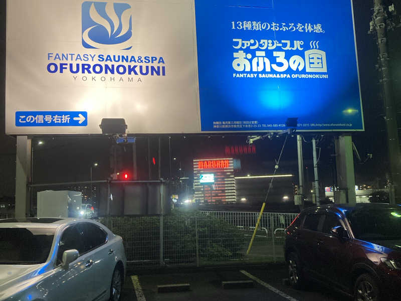 相変わらず資さんうどんは混んでいる。交通誘導員はいるものの鶴見川に向かってスピードに乗って行くところなので駐車場から出て行くのも容易ではない。交通誘導員がいなかったら無理に出てくる車のせいで間違いなく事故が起こるだろう。いつもオレンジ色に光っている「ゆ」の文字が今日も消えている。もしや改装工事で長期休業か?と思ったが青と白の看板はライトアップされているし駐車場にも車が入っているようだし、今日はやっているようだ。