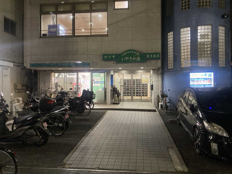 露天にある水風呂は18℃とそれほど冷たくはないが、外にあるのでこれからの季節温度以上に冷たく感じるだろう。休憩は水風呂前の椅子、反対側の露天のベンチ、脱衣所と休憩場所も多い。21時近くなると急に混み合ってきた。いやさか湯って子どもが多い。あと浴室内がスリッピーなので要注意。私だけでなく他の人もすべっていたのでホント気をつけないと危ない。