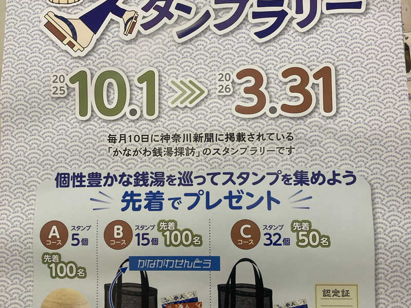 フロントでかながわ銭湯探訪のスタンプカードを出すとご主人が「かなとも通信の10月号もらいましたか?」と言う。何を言っているのかわからなかったが「いいえ」と答えると神奈川新聞の号外みたいなものをくれた。かながわ銭湯探訪の32湯全湯が紹介されているという。最後の1部だったらしい。ありがたき幸せ。