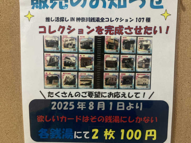 おっ?6月末で終わった推し活の神奈川銭湯カード、2枚100円で販売が始まったらしい。推し活と同様でその銭湯とランダムにもう1枚入っている紙袋での販売とのこと。