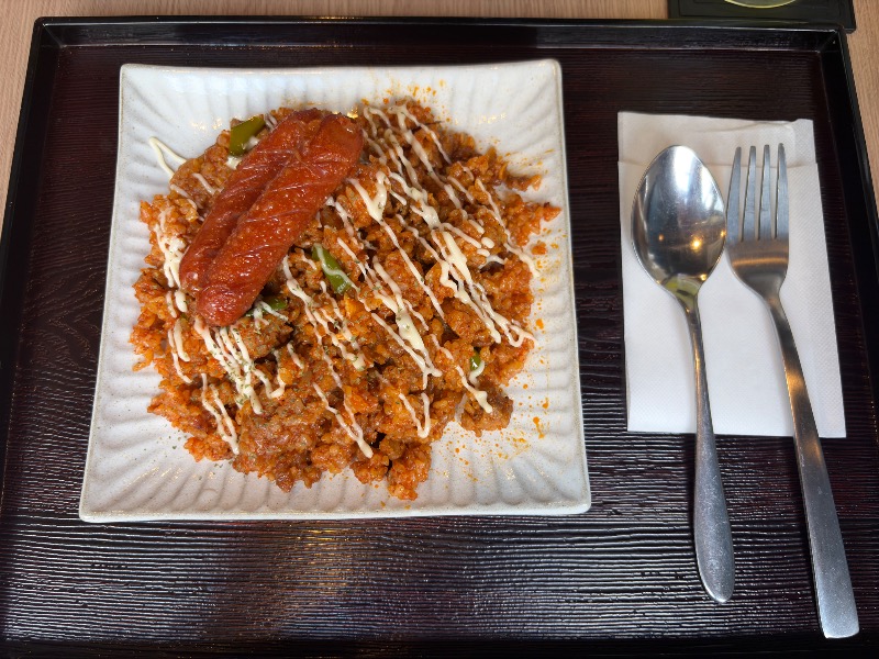 スパめし(1,000円) 待ちに待ったリバイバルメニュー🌶️ ホットソースで味付けされたジャンバラヤにチョリソーが2本乗った一皿 豚挽肉、ピーマン、唐辛子も大胆にも炒められており辛党歓喜の味に😊 しっかり辛いので、辛味が苦手な人は覚悟を決め食すべし! 評価 ⭐️⭐️⭐️
