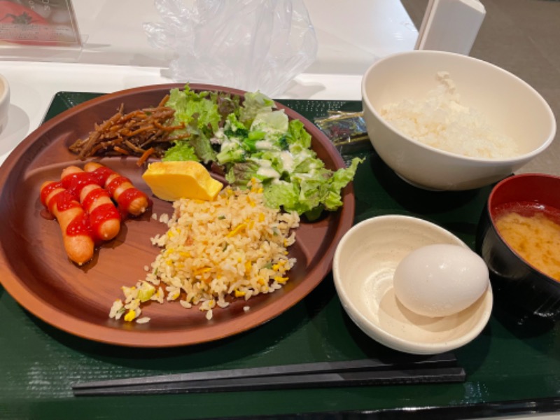 カプセル宿泊で連日。 朝ご飯は1000円バイキング。すごく色々あった。美味しかった。